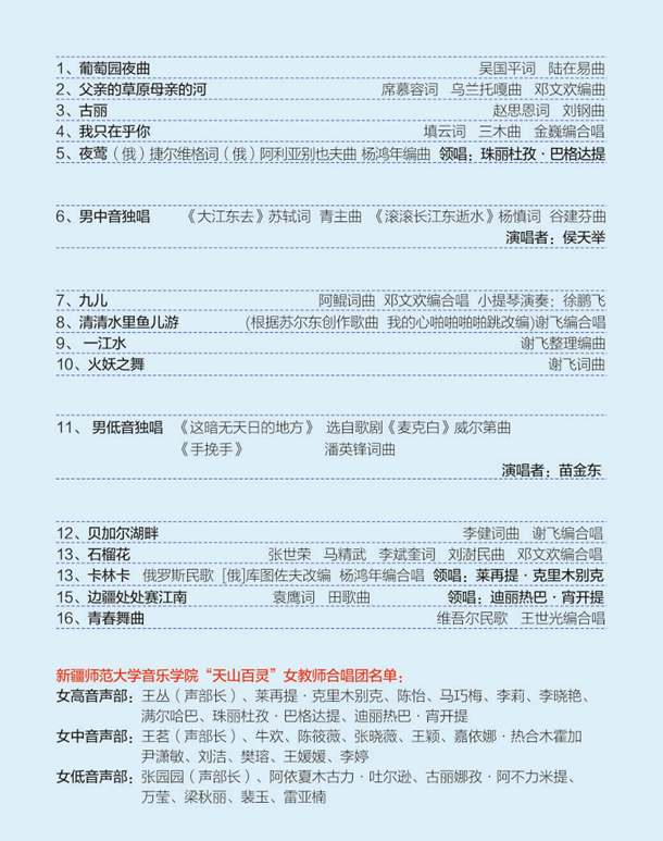 演出单位:新疆师范大学音乐学院“天山百灵”女教师合唱团